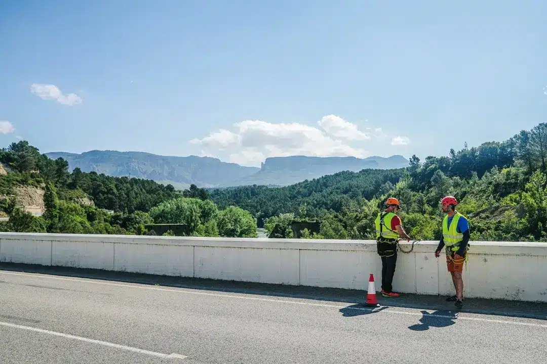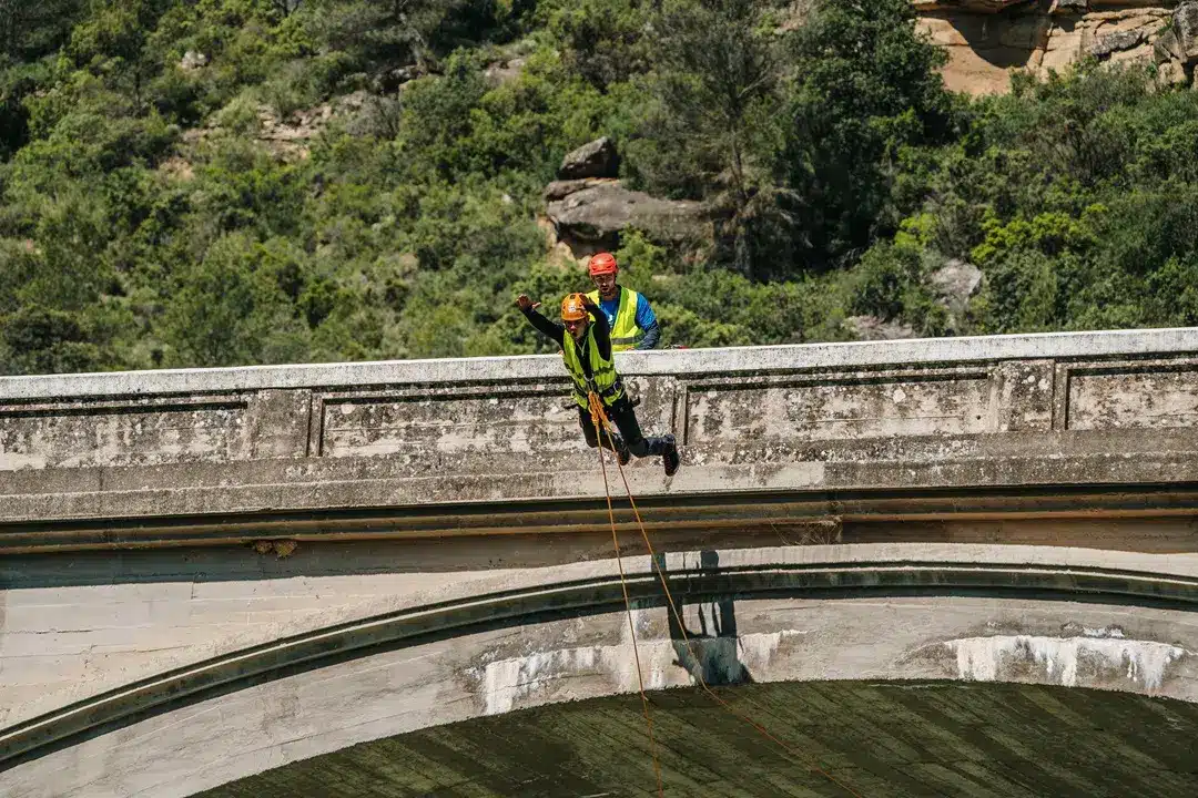 L’activité se déroule sur le pont à l’entrée de Murillo de Gállego, une impressionnante enclave devant le point de vue des vautours et surplombant les Mallos de Riglos. Le saut a un Hauteur de 15 mètres, parfait pour ressentir une chute libre et un swing sans compromettre la sécurité.